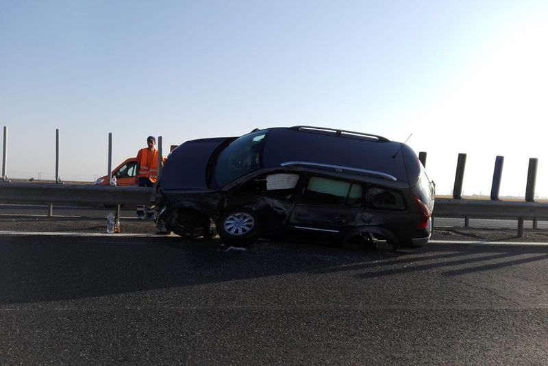 În această dimineață, pe Autostrada A2, km 137, sensul București - Constanța, a avut loc un accident în care au fost implicate două autovehicule, unul dintre acestea fiind urcat pe parapetul median al autostrăzii.