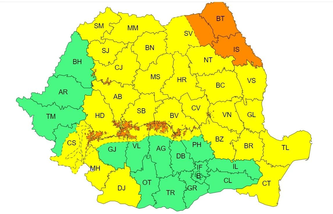 Joi, între orele 12:00 și 20:00, județele Botoșani și Iași, precum și zona joasă a județului Suceava, vor fi afectate de intensificări puternice ale vântului. Rafalele vor atinge viteze de 70 până la 90 km/h, ceea ce poate provoca probleme în trafic și posibile pagube.