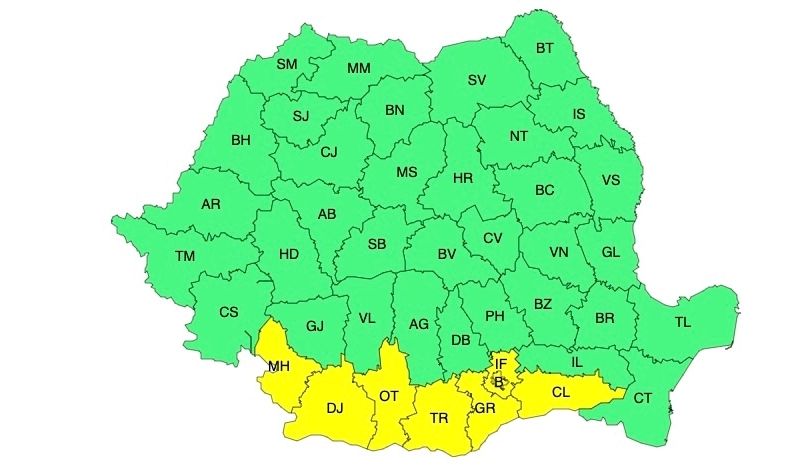 Vești bune de la ANM. Cel puțin pentru moment am scăpat de codurile roșii și portocalii de caniculă și furtuni. Dar, avem în vigoare un cod galben, valabil pentru sudul și vestul României.