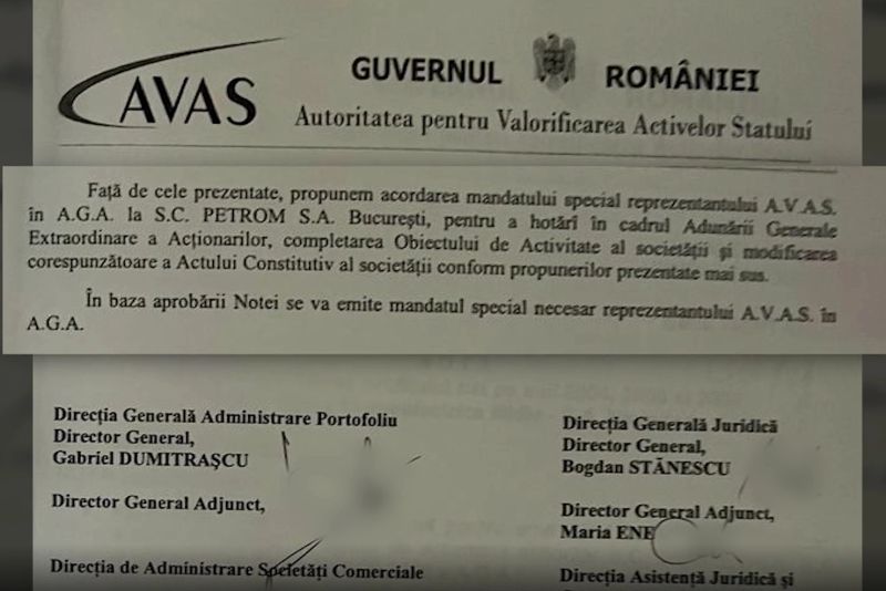 Acest document, a afirmat Anca Alexandrescu, dovedește că AVAS monitoriza contractul de privatizare Petrom și știa exact ce conține