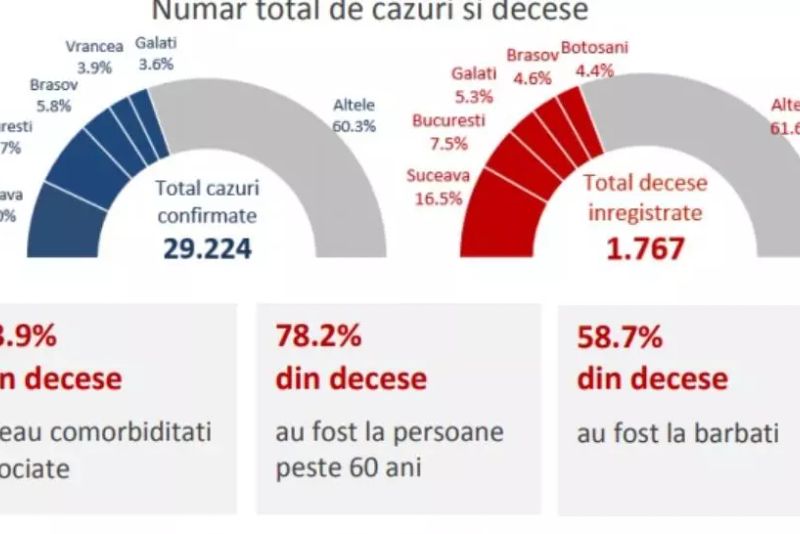 - 78.2% din totalul deceselor au fost la persoane peste 60 ani, iar 58.7% dintre decese au fost la bărbați.