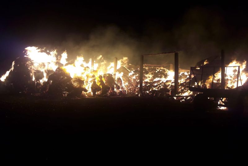 La locul intervenției s-a deplasat și un echipaj SMURD pentru a acorda ajutor posibilelor victime ale incendiului și sprijin echipelor de stingereLa sosirea echipajelor de intervenție, incendiul se manifesta extrem de violent, pe o suprafață totală de aproximativ 1000 mp, diferite tipuri de baloți, precum și alte utilaje agricole aflându-se în flăcări.Au fost evacuate 24 ovine care se aflau în pericol dacă incendiul se propaga.Cauza si imprejurarea producerii incendiului urmează a se afla în urma stabilirii tuturor elementelor de cercetare.