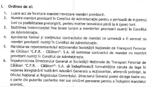 Numire membri, stabilire indemnizatii, mandatarea reprezentantului SNCFR, totul vine de la minister.