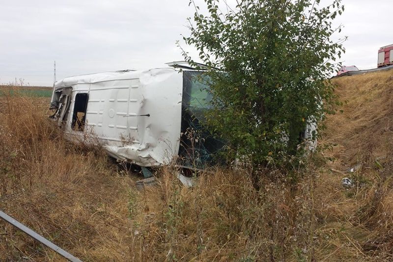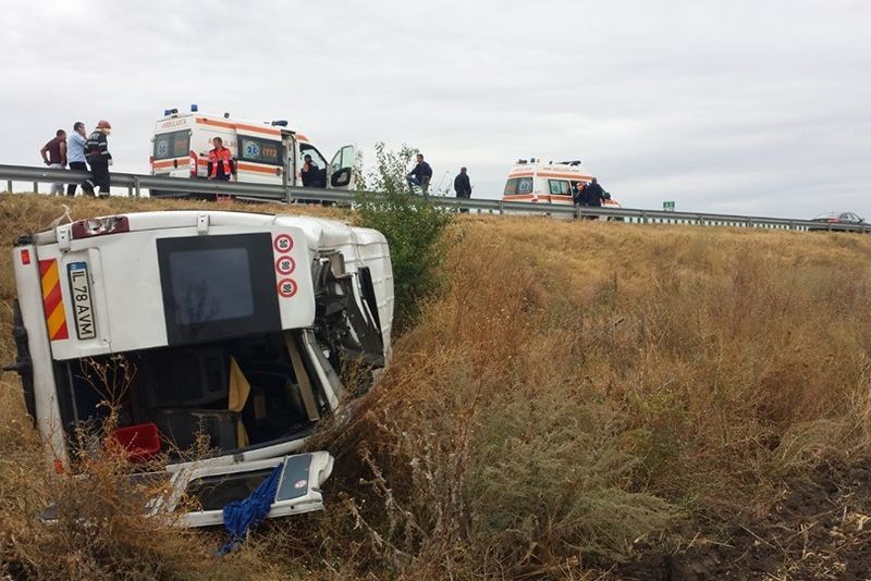 Un microbuz cu 9 persoane s-a răsturnat, în această dimineață, pe A2 la km 73