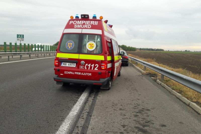 În această dimineață, la 8:40, a fost apelat numărul de urgențe 112 prin care s-a anunțat un eveniment rutier pe A2, km. 73, calea București - Constanța. În accident au fost implicate două autovehicule, un microbuz în care se aflau 9 persoane și un autoturism.