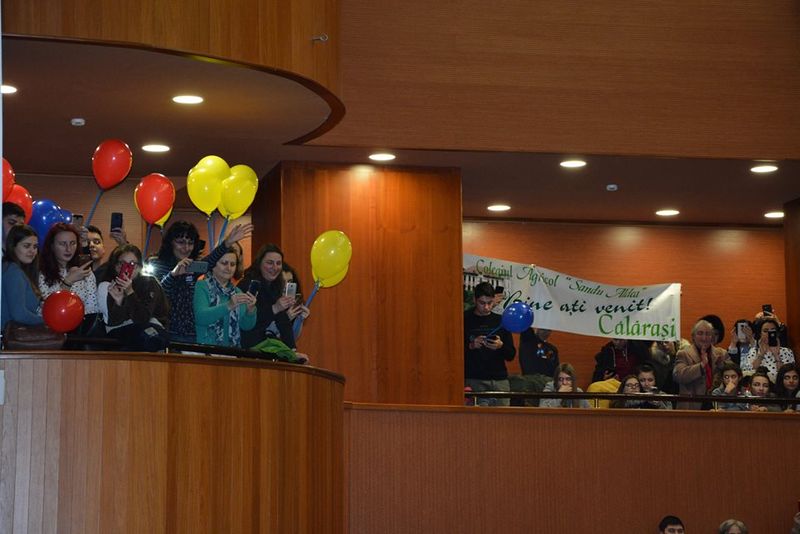 Sala Barbu Știrbei a Centrului Cultural a fost plină de călărășenii dornici să o vadă în carne și oase pe campiona de la Roland Garros, pe numărul 1 mondial în tenisul feminin, pe campioana sufletelor românilor Simona Halep.După o scurtă oprire la Primăria Municipiului Călărași, acolo unde o așteptau primarul Daniel Drăgulin, alături de cei doi viceprimari Dragoș Coman și Viorel Ivanciu, consilieri locali și funcționari ai primăriei, și președintele Consiliului Județean, Vasile Iliuță, Simona Halep a intrat în Sala Barbu Știrbei pe ritmurile muzicii machidonești și a uralelor celor prezenți.[embed]https://www.facebook.com/ariciu.dumitru/videos/pcb.2240619109290985/2240615105958052/?type=3&theater[/embed]Emoționată, Simona Halep a urcat pe scenă, alături de părinții săi, acolo unde a primit distincția de „Cetățean de onoare” al municipiului din partea primarului Daniel Drăgulin, dar și titlul de „Cetățean de onoare” al comunității de aromâni din Călărași.La final, Simona le-a mulțumit celor prezenți pentru primire și le-a promis că va lupta în continuare pentru a le aduce bucurii prin victoriile sale.