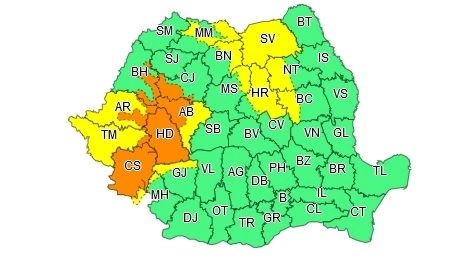 Administrația Națională de Meteorologie a actualizat avertizarea meteo cod portocaliu de vreme rea.