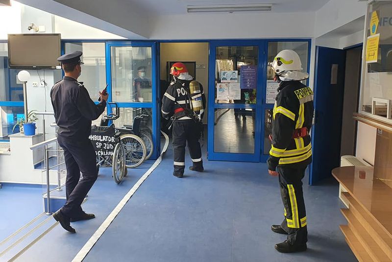Pompierii ISU Călărași au organizat în incinta Spitalului Judeţean simularea intervenţiilor în scopul de a pregăti personalul medical pentru a face faţă unor situaţii de urgenţă
