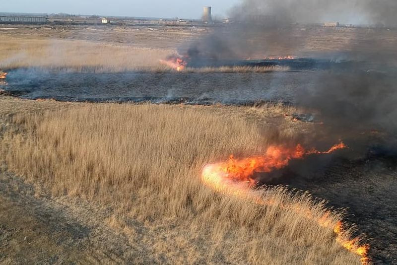 Un Incendiu de vegetație uscată a izbucnit la periferia municipiului Călărași, în zona combinatului siderurgic